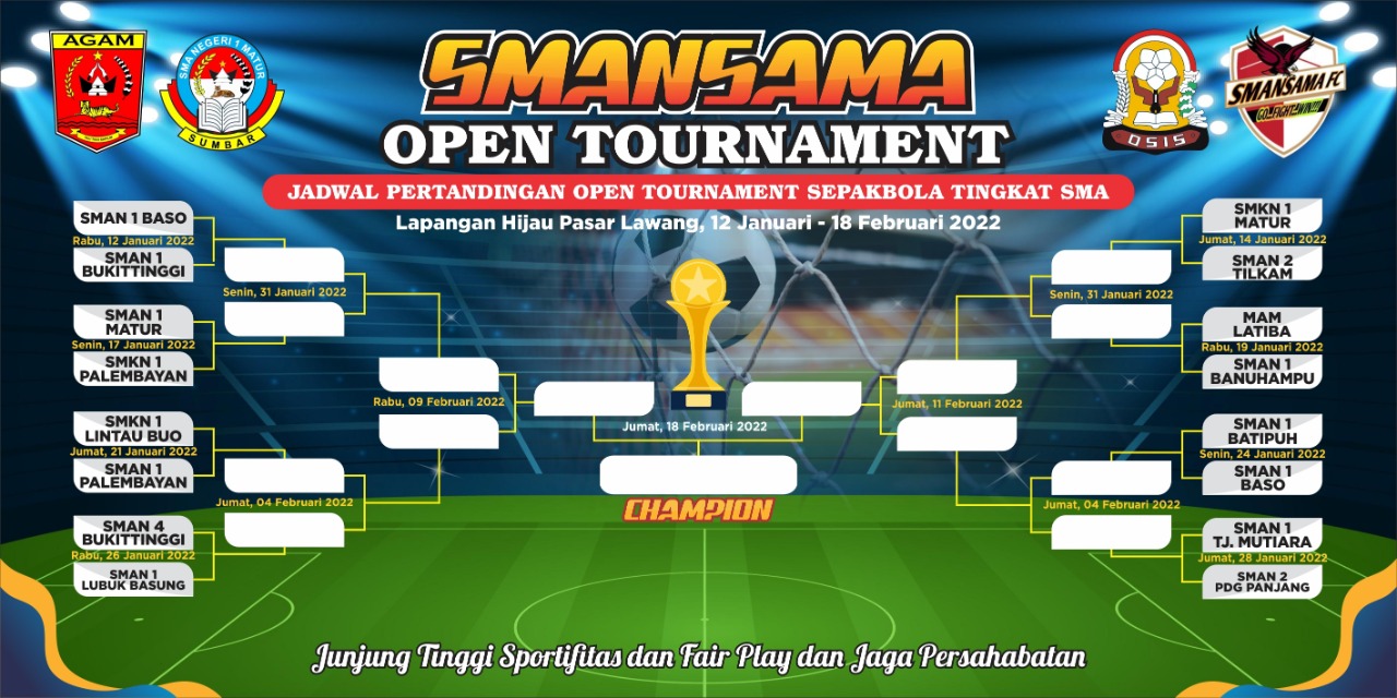 Kepala SMAN 1 Matur, Haswir, Sabtu (29/1) menyebutkan, pihaknya gelar turnamen dalam rangka HUT SMANSAMA ke-38, yang digelar untuk sekolah tingkatan SMA dan SMP se-Sumbar.
