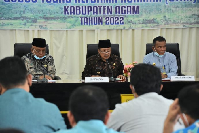 Agam, Marawa – Bupati Agam, Dr. H. Andri Warman buka rapat persiapan Gugus Tugas Reforma Agraria (GTRA) Kabupaten Agam, di aula kantor Bupati Agam, Kamis (07/04/22).