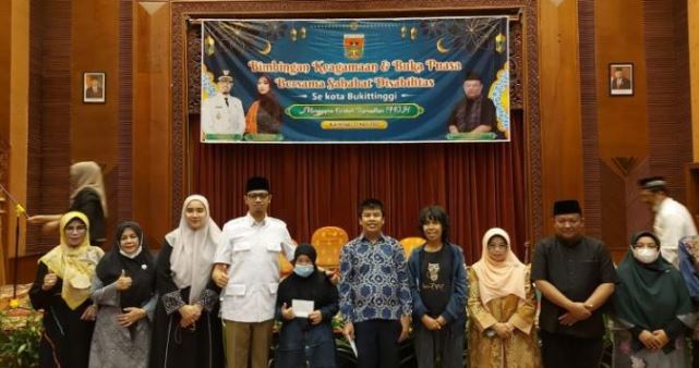 Bukittinggi, Marawa – Pemerintah Kota Bukittinggi bersama Anggota DPRD berikan bimbingan keagamaan sekaligus bingkisan lebaran kepada 300 disabilitas se-kota Bukitttinggi. Kemudian dilanjutkan dengan buka bersama di Hotel Pusako, Jum’at (22/04/22).
