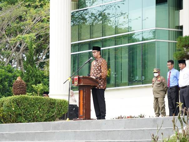 Bukittinggi, Marawa – Wali Kota Bukittinggi, Erman Safar pimpin apel gabungan terakhir sebelum libur Idul Fitri 1443 H. Apel digelar di halaman Balaikota, Kamis (28/04/22).