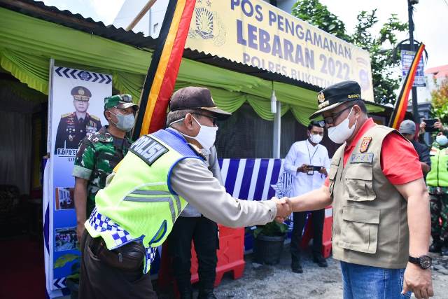 Agam, Marawa – Bupati Agam, Dr. H. Andri Warman meninjau Pos pengamanan lebaran 2022, yang tersebar diberbagai lokasi, Jum’at (29/04/22).