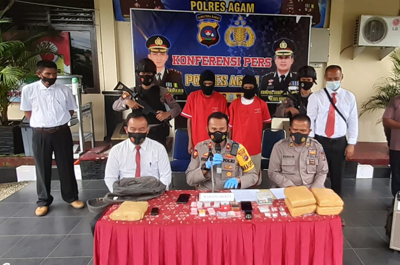 Wakapolres Agam, Kompol Syafril yang didampingi Kasat Narkoba, Kabag Humas AKP Nurdin mengatakan dari dua tersangka pelaku berhasil diamankan barang bukti yang cukup meyakinkan terhadap dua tersangka itu telah menyalahgunakan narkotika.