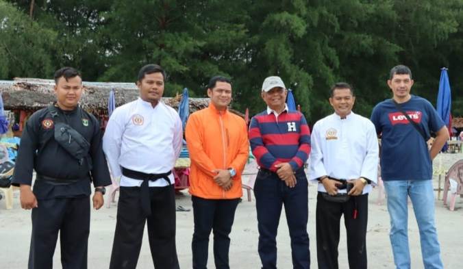 Agam, Marawa – Ketua Komite Olahraga Nasional Indonesia (KONI) Kabupaten Agam, Drs. Edi Busti, M.Si hadiri sekaligus membuka secara resmi Ujian Kenaikan Tingkat (UKT) sabuk perguruan silat Tangan Mas di pantai pasir Tiku Kecamatan Tanjung Mutiara, Minggu (12/06/22).