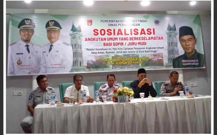 Sosialisasi Angkutan Umum yang Berkeselamatan bagi sopir/Juru Mudi ini merupakan dana Pokok Pikiran (Pokir) anggota DPRD Kota Bukittinggi, Herman Syofyan, SE dengan tema ” Melalui Sosialisasi ini Mari Kita Ciptakan Pelayanan Angkutan Umum yang aman, tertib dan teratur di Kota Bukittinggi”.