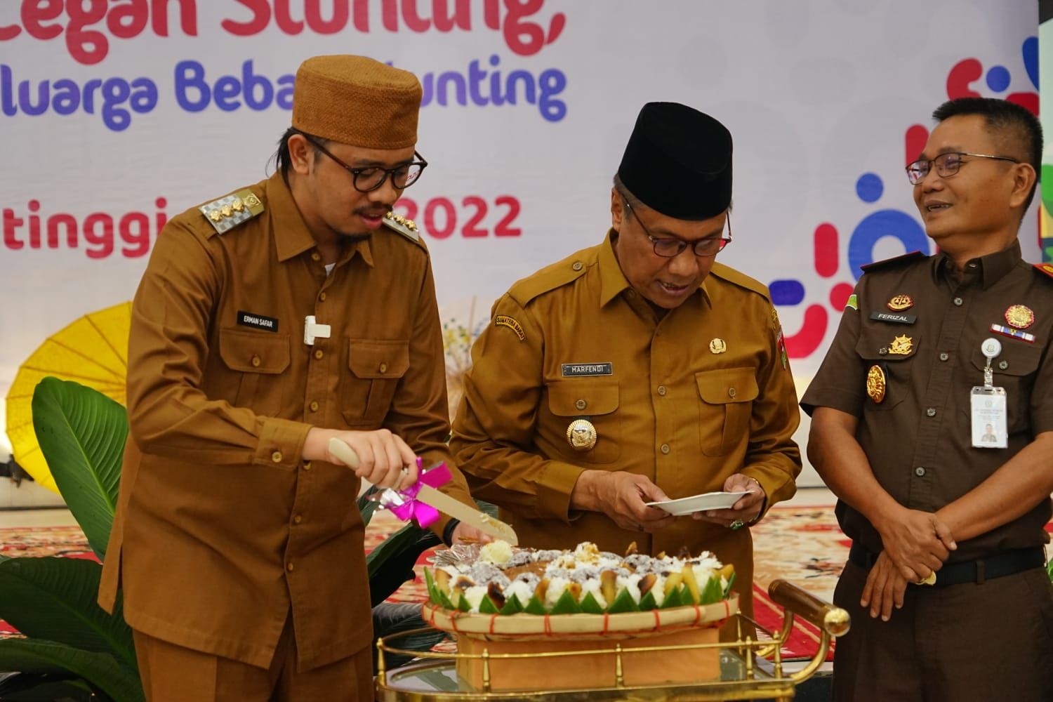 Dalam kesempatan itu, Wali Kota Bukittinggi didampingi Wawako dan Forkopimda, melakukan pemotongan kue, makanan tradisional Sumatra Barat. Potongan pertama pun diberikan Wako untuk Wawako.