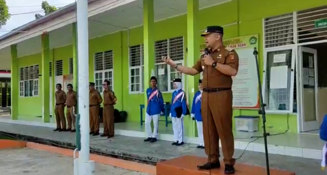 Marawapost.com, Agam – Dalam rangka silaturrahmi dan pembinaan terhadap sekolah- sekolah di kecamatan lubuk basung, Camat Lubuk Basung, Hidayatul Taufik, S. STP bersama Kasi Kessos, Elfis Rinaldi, S.Sos dan Kasi Trantib, Martiyas, SPd beserta staf mengikuti upacara bendera di SMK N 2 Lubuk basung, Senin (26/09/22). Camat Lubuk Basung, Hidayatul Taufik bertindak sebagai pembina upacara.