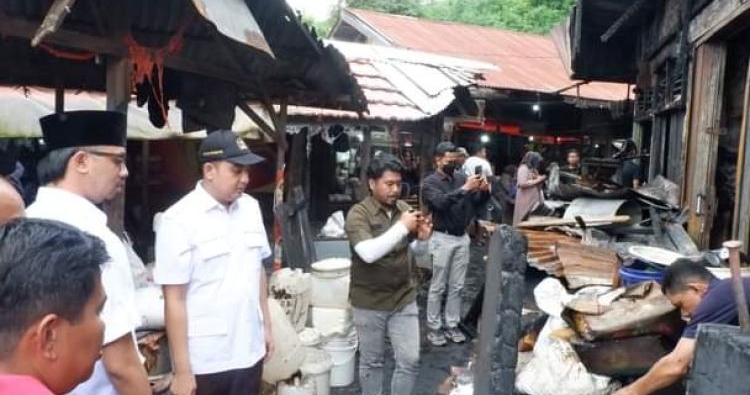 “Berdasarkan informasi dari beberapa pedagang, ada sekitar lebih kurang 10 unit kios milik pedagang ludes terbakar hingga tinggal puing saja”, ucap Ade.
