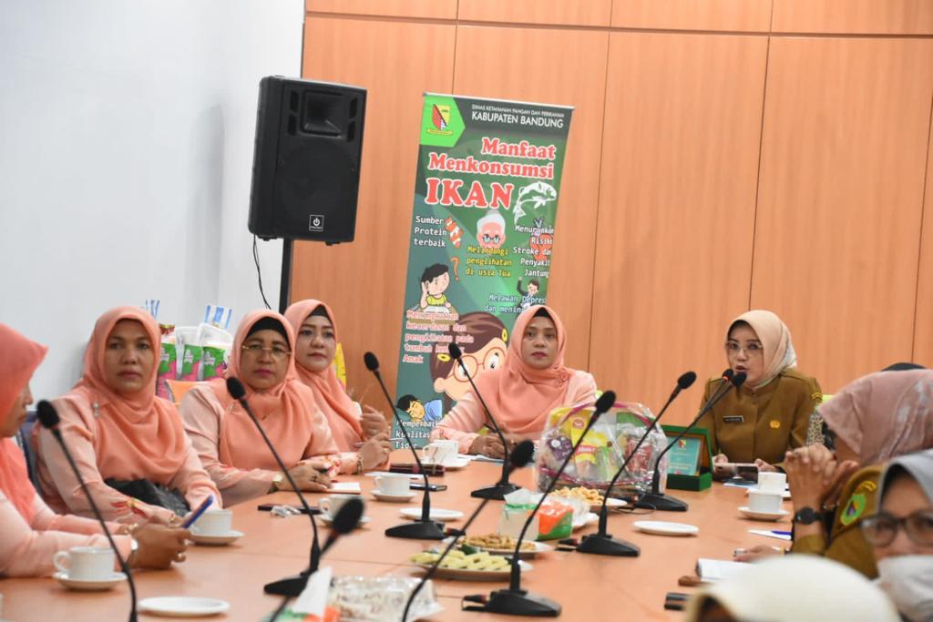 Rombongan yang dipimpin Ketua Forikan Kabupaten Agam, Ny Yenni Andri Warman bersama Kepala Dinas Perikanan dan Ketahanan Pangan (DPKP) Kabupaten Agam, Rosva Deswira, disambut hangat Kapala Dinas Pangan dan Perikanan Kabupaten Bandung, Ina Dewi Kania bersama anggota Forikan dan Tim POKJA III PKK Kabupaten Bandung.