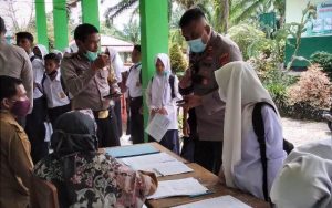 Vaksinasi Covid-19 di SMP 4 Dikunjungi Kapolsek Lubuk Basung