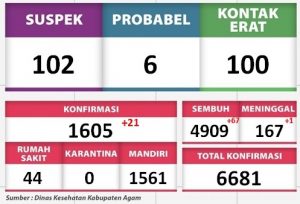 Agam, Marawa – Jumlah warga yang dinyatakan terkonfirmasi Covid-19 di Kabupaten Agam bertambah sebanyak 21 kasus. […]