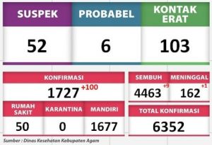 Bertambah Terus, Warga Agam Terpapar Covid-19 Hari Ini 100 Orang