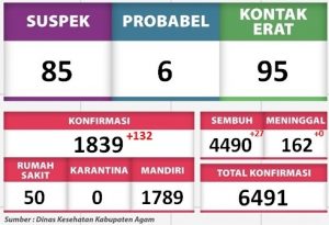 Hari Ini, Warga Agam Terpapar Covid-19 Bertambah 132 Kasus