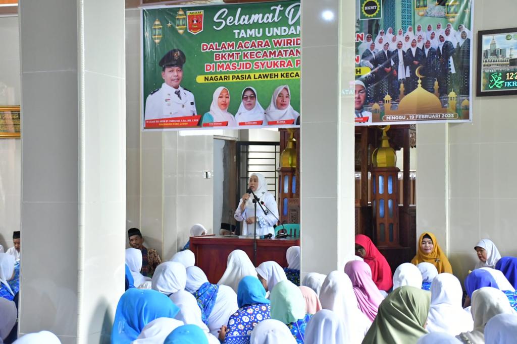 Marawapost.com, Agam – Ketua Badan Kontak Majelis Taklim (BKMT) Kabupaten Agam, Ny Yenni Andri Warman hadiri Wirid gabungan BKMT di Masjid Syukra Jorong Palimbatan, Nagari Pasia Laweh, Kecamatan Palupuh, Minggu (19/02/23).