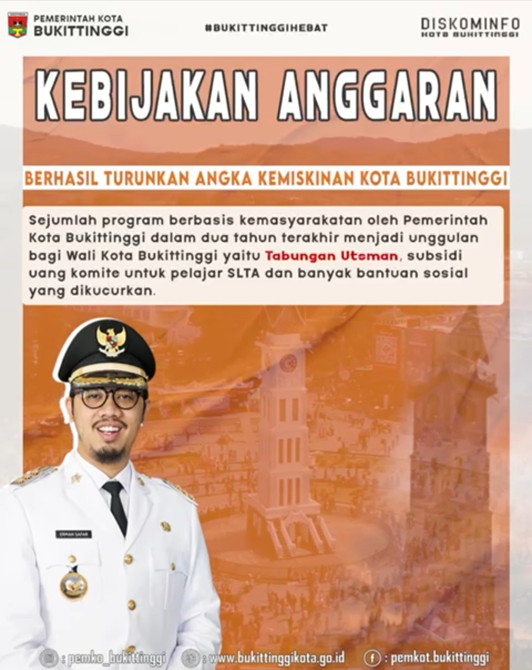 Melalui arah kebijakan anggaran Wali Kota Bukittinggi untuk membangkitkan ekonomi UMKM, pada Tahun 2022, Kota Bukittinggi berhasil menurunkan angka kemiskinan mencapai titik terendah sepanjang periode Rencana Pembangunan Jangka Panjang Daerah (RPJPD) Tahun 2006-2025 sampai sekarang.