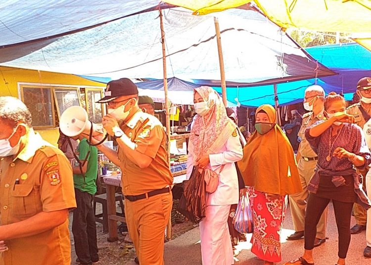 Usai pelaksanaan apel gabungan, unsur Forkopimca Tanjung Mutiara mengaktifkan kembali Tim Satgas Covid-19. Tim terjun langsung menertibkan pengunjung di pasar Tiku.