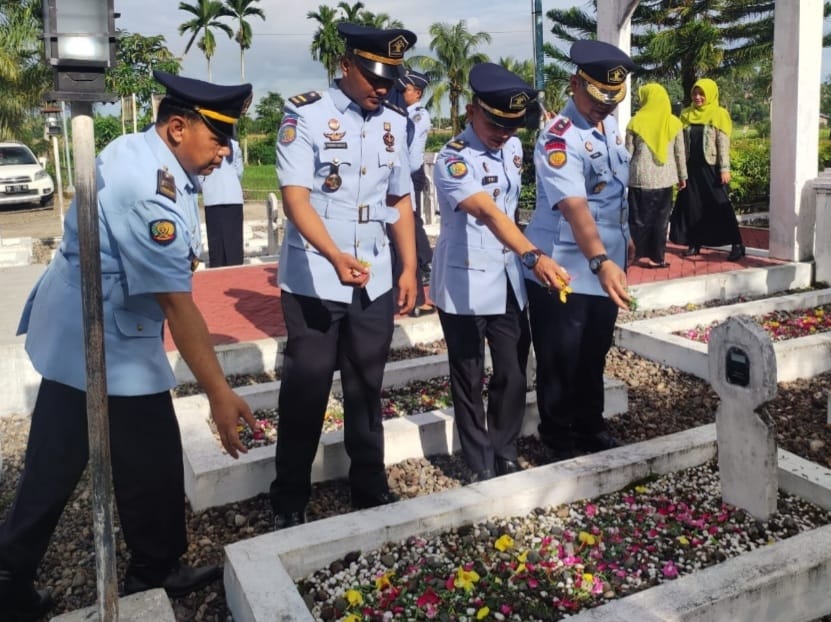 “Dalam rangka memperingati Hari Bhakti Permasyarakatan ke-59 ini kita melakukan kegiatan Ziarah ke makam Pahlawan Manggopoh dengan melakukan tabur bunga”, ucap Suroto.