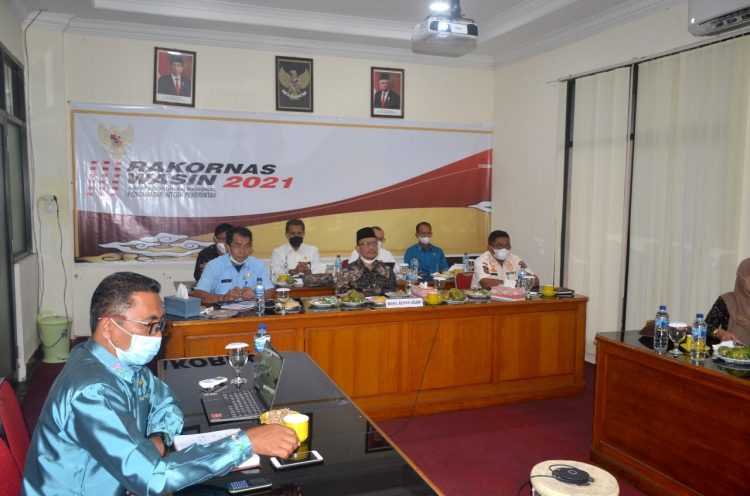 Agam, Marawa – Wakil Bupati Agam, Irwan Fikri, Ikuti Rapat Koordinasi Nasional, Pengawasan Intern Pemerintah (Rakornas Wasin) tahun 2021, secara virtual, di Aula Kantor Bupati Agam, Kamis (27/05).