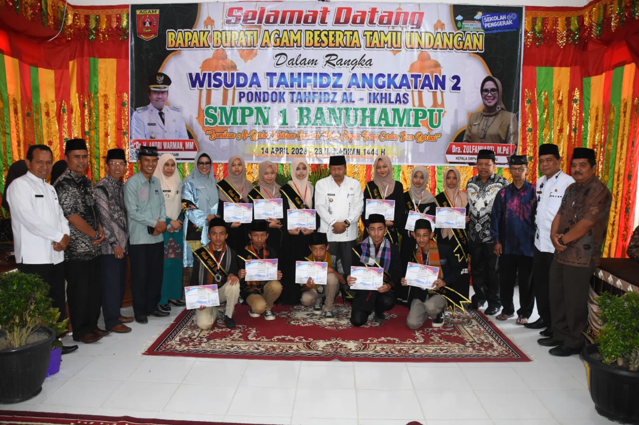 Marawapost.com, Agam – Bupati Agam, Dr H Andri Warman MM hadiri wisuda tahfidz angkatan 2, Pondok Tahfidz Al-Ikhlas SMPN 1 Banuhampu, Jumat (14/04/23).