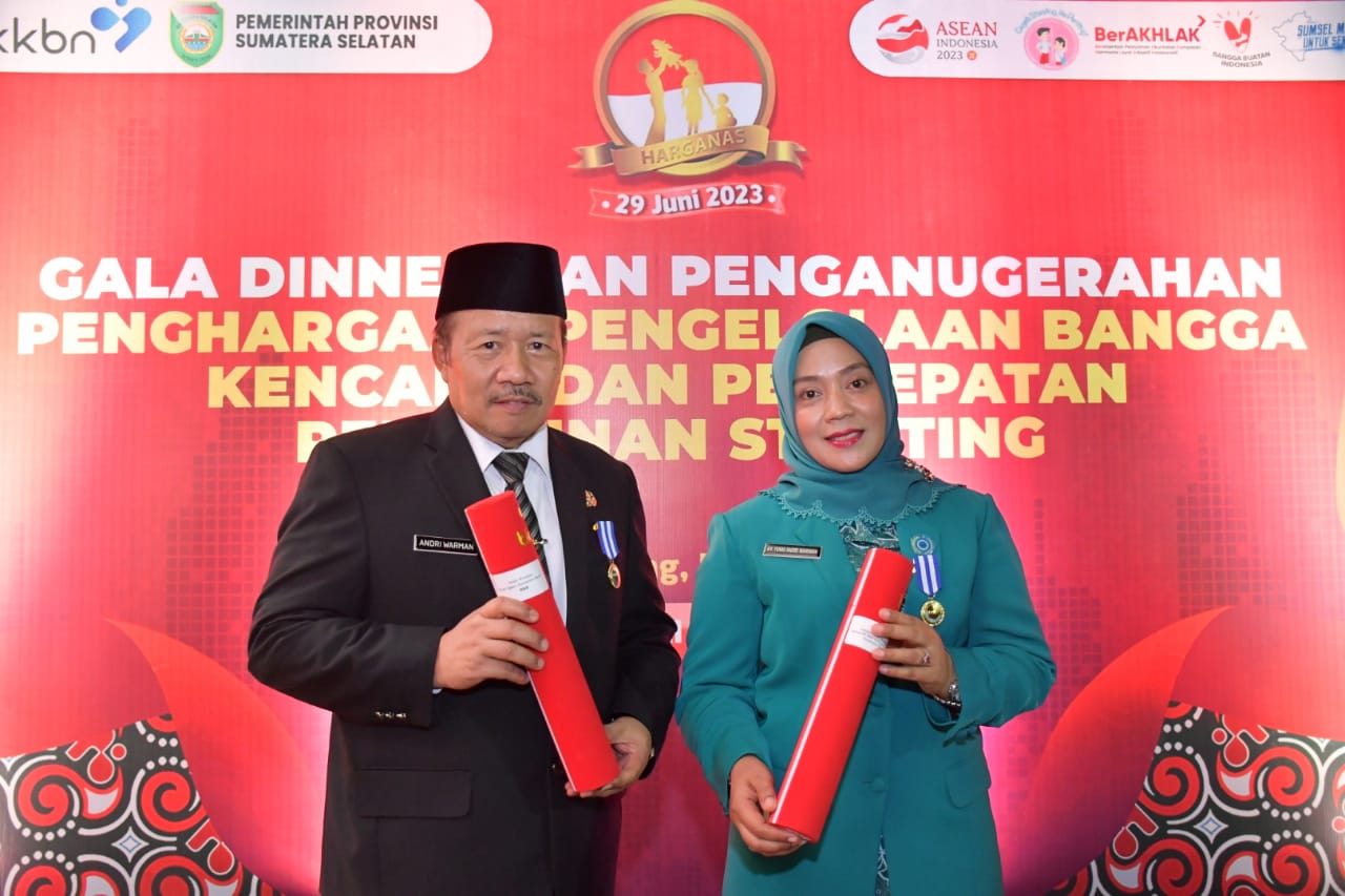 Penghargaan diserahkan lansung oleh Kepala BKKBN RI Hasto Wardoyo pada kegiatan gala dinner yang termasuk dalam rangkaian Hari Keluarga Nasional (Hargana) 2023 di Griya Agung Palembang, Sumatra Selatan pada Selasa malam (04/07/23).