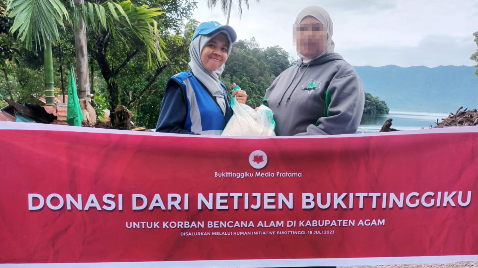 Marawapost.com, Bukittinggi – Bukittinggiku Media Pratama dan netijen @bukittinggiku.ig mendonasikan 100 kg beras untuk korban bencana alam di Nagari Tanjung Sani, Kecamatan Tanjung Raya, Kabupaten Agam melalui Human Initiative Bukittinggi, Jum’at (21/07/23).