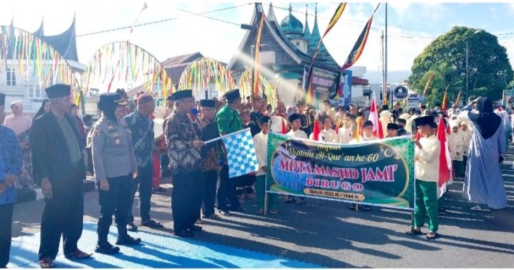 Marawapost.com, Bukittinggi – Wakil Walikota Baukittinggi, Marfendi lepas secara resmi pawai ta’aruf khatam Al-Qur’an yang dilakukan oleh MDTA Birugo, Minggu (16/07/23) setelah kemaren dilakukan Khatam Qur’an Pawai Ta’aruf di mulai dari halaman Masjid Jami’ Birugo akanmenuju Jam Gadang Bukittinggi.