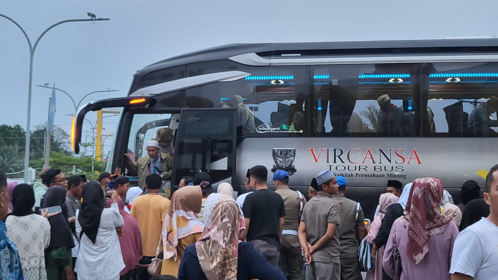 Tadi nya para rombongan jamaah haji ini mendarat di Bandara Internasional minangkabau pada pagi hari,kemudian menuju Asrama Haji Padang untuk istrahat sebentar kemudian di lajutkan ke halaman Masjid Agung Dharmasraya