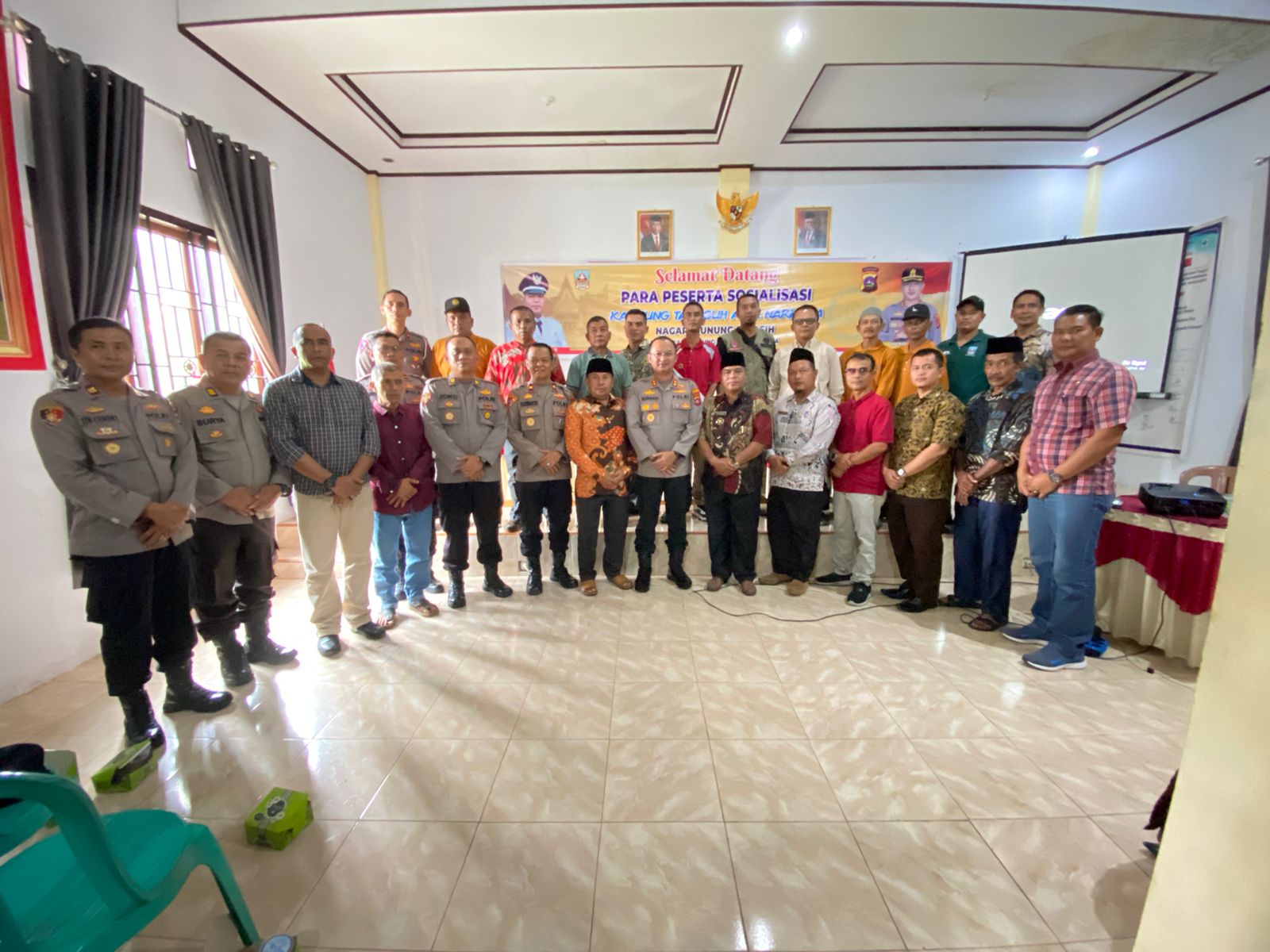 Marawapost.com,Dharmasraya – Kapolres Dharmasraya Akbp Nurhadiansyah, S.I.K, Polda Sumbar bersama PJU, Kasat Narkoba, Kapolsek Pulau Punjung dan personilnya meresmikan Kampung Tangguh Anti Narkoba dan melakukan sosialisasi kepada Para Kepala Jorong, masyarakat, dan pemuda tentang bahaya penyalah gunaan Narkoba di Aula Kantor Walinagari Gunung Selasih Kecamatan Kabupaten Dharmasraya. Kamis, 10/08/2023.