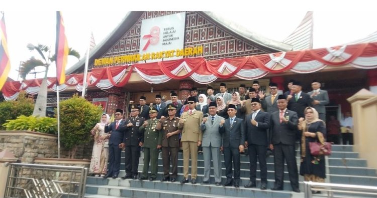 “Selamat Hari Jadi Kemendagri yang ke-78, ” kata Walikota Bukittinggi Erman Safar usai paripurna mendengarkan pidato kenegaraan presiden RI di aula kantor DPRD Kota Bukittinggi, Rabu (16/08/23) siang.