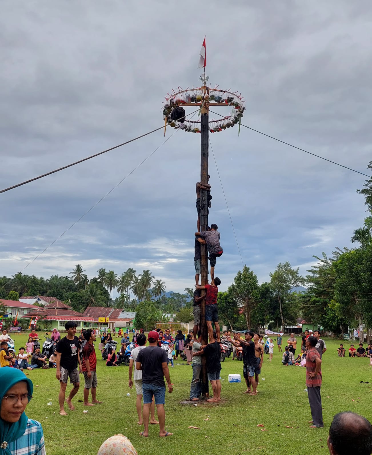 Dilanjutkan St. Rajo Mudo, kegiatan penutup adalah panjat pinang yang kita gelar hari ini. Untuk panjat pinang ini kita menyediakan beranekaragam hadiah yang diletakkan diatas puncak pohon pinang tersebut.