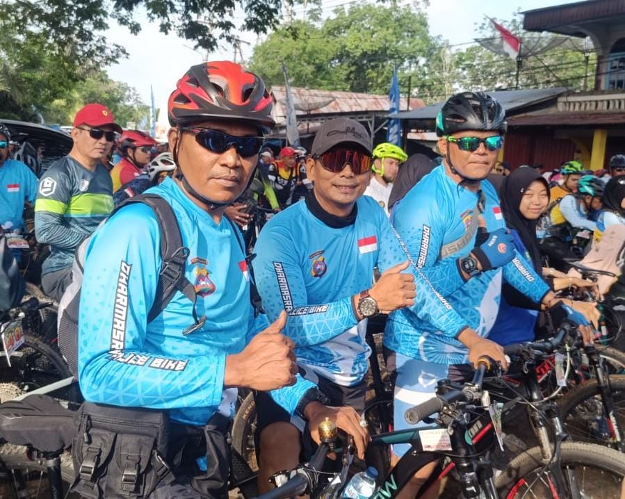 Marawapost.com,Dharmasraya – Anggota Polres Dharmasraya beserta jajaran yang tergabung dalam( Dharmasraya Police Bike) di pimpin oleh waka Polres Kompol Andri Nugroho Saputro, S.E.S.IK mengikuti Gowes Siraturrahmi Kobar MTB Adventure Jilid 1 Dharmasraya, Sumbar, Riau, Jambi.