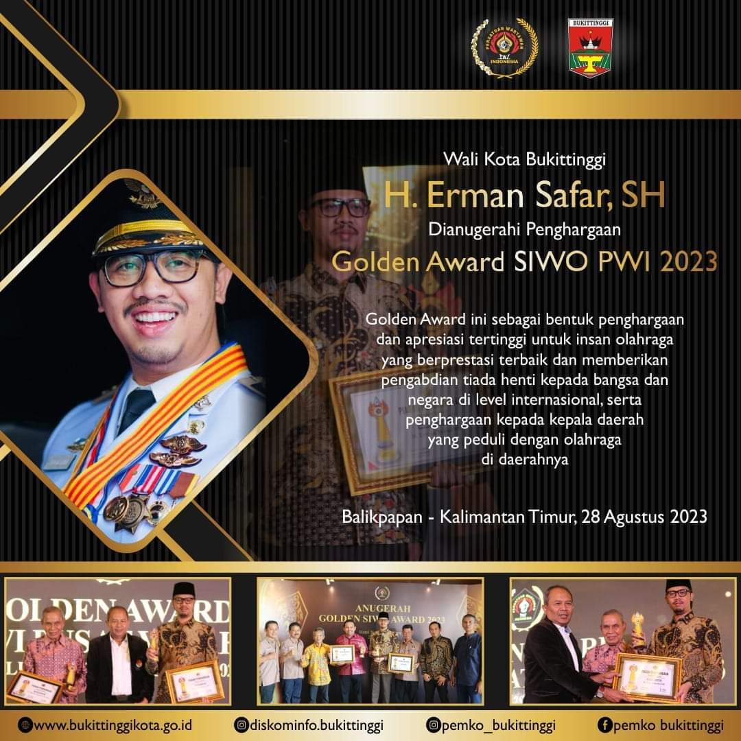 Ada beberapa kategori yang diberikan SiWO PWI Pusat, diantaranya, Atlet Terbaik Putra dan Putri, Pelatih Terbaik, Pembina Terbaik, Gubernur Peduli Olahraga dan Bupati/Wali Kota Peduli Olahraga. Terpilihnya Erman Safar, sebagai satu satunya kepala daerah di Sumatra Barat yang menerima penghargaan itu tentunya telah melewati berbagai penilaian yang ketat. Wako Erman Safar, dinilai memiliki kepedulian terhadap perkembangan olahraga di Kota Bukittinggi. (*)