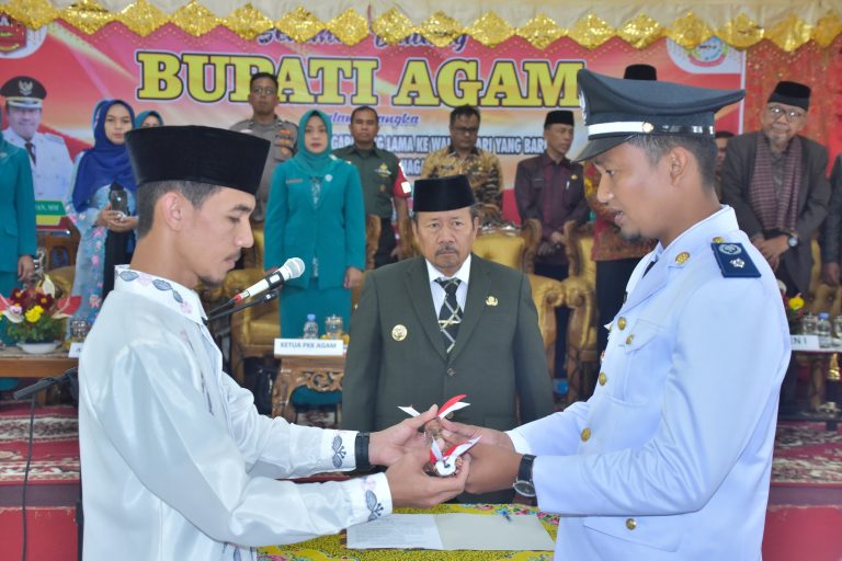 Marawapost, Agam – Bupati Agam Dr H Andri Warman, MM hadiri serah terima jabatan (Sertijab) Walinagari Sungai Pua, Kecamatan Sungai Pua periode 2023-2029 di aula kantor Sungai Pua, Kamis (31/08/23).