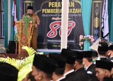 Penyerahan ijazah kepada 141 santriwan dan santriwati angkatan ke-80, yang seharusnya diserahkan tahun lalu, tapi baru bisa terlaksana sekarang akibat pandemi Covid-19.