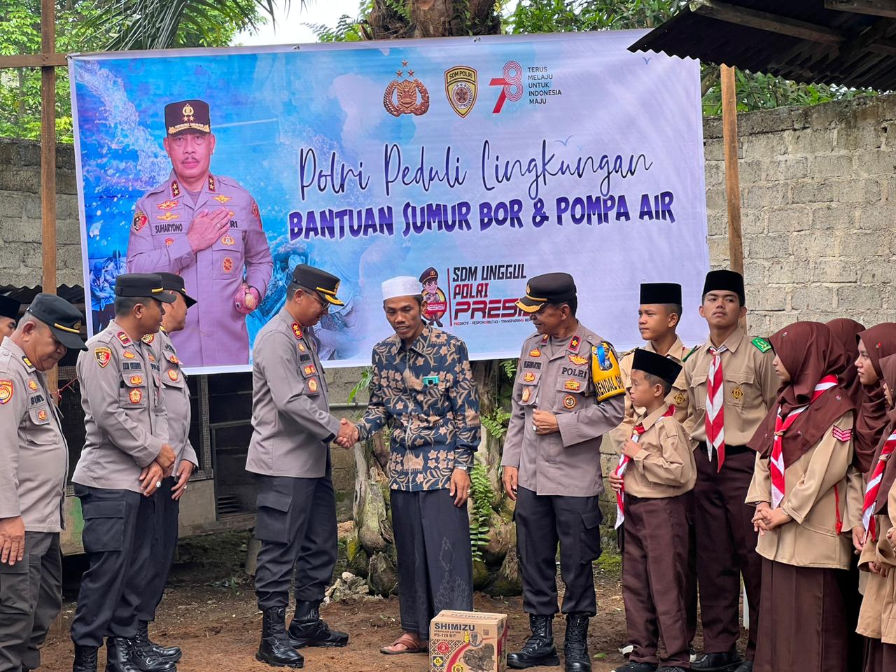 Kapolres Dharmasraya AKBP NURHADIANSYAH, S.I.K mengatakan bantuan Pompa Air dan sumur Bor merupakan salah satu Program Kapolri yang dilaksanakan secara serentak pada hari ini diseluruh Jajaran Kepolisian Republik Indonesia dalam rangka Polri Peduli lingkungan. Bantuan Pompa dan sumur bor dari pihak Polres Dharmasraya ini bertujuan untuk mempermudah akses air bersih bagi para santri / santriwati yang kesulitan mendapatakan air bersih,