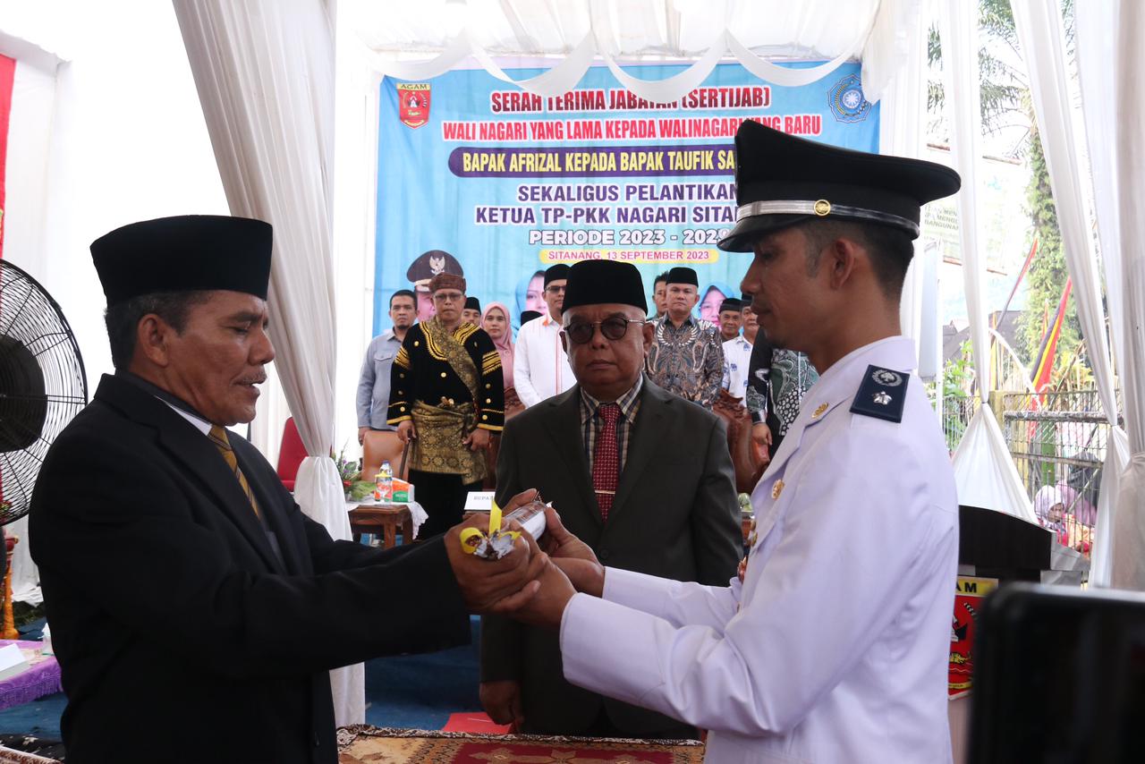 Marawapost.com, Agam – Sertijab Walinagari Sitanang Taufik Saleh dengan Afrizal serta pelantikan TP PKK Nagari Sitanang Kecamatan Ampek Nagari yang baru Ny Ririn Taufik Saleh dilakukan di Kantor Walinagari setempat Rabu (13/09/23).