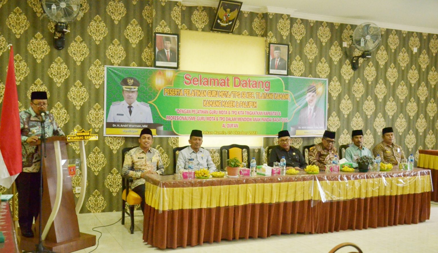 Marawapost.com, Agam – Bupati Agam Dr H Andri Warman membuka secara resmi Pelatihan Peningkatan Guru TPA/MDA se Kecamatan Tilatang Kamang, Kamang Magek dan Palupuah tahun 2023 di Aula Kantor Camat Tilatang Kamang, Kamis (05/10/23).