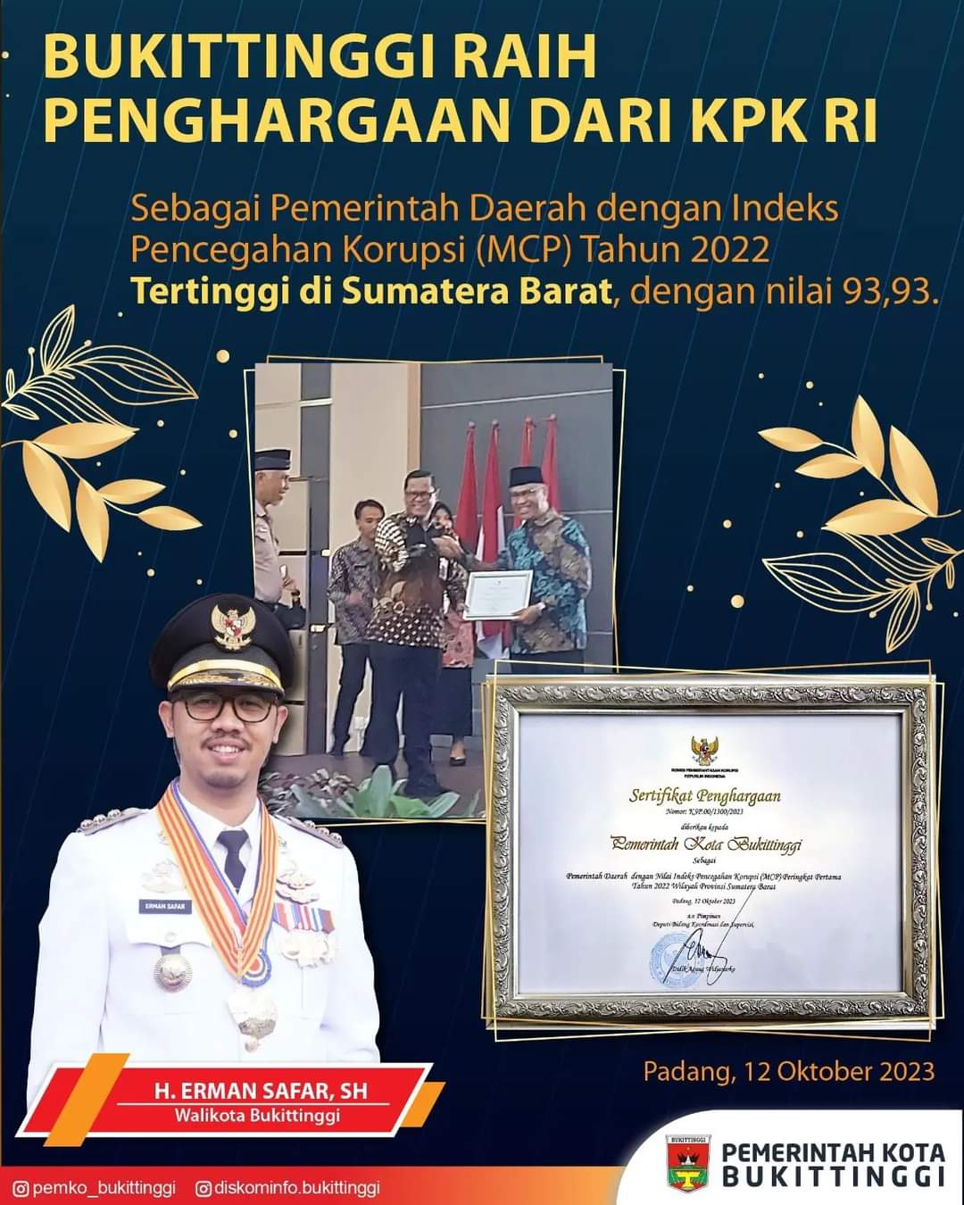 Upaya ini sesuai dengan komitmen Wali Kota Bukittinggi, Erman Safar, agar seluruh ASN di Lingkungan Pemko Bukittinggi bekerja dengan maksimal sesuai aturan yang berlaku. Setiap pegawai terutama pejabat pemerintah, harus paham dan menerapkan prinsip prinsip anti korupsi dalam menjalankan tata kelola pemerintahan. Hal ini membuat Bukittinggi menjadi kota dengan peringkat pertama atas capaian indeks pencegahan korupsi tertinggi di Sumatra Barat dengan nilai 93,93.