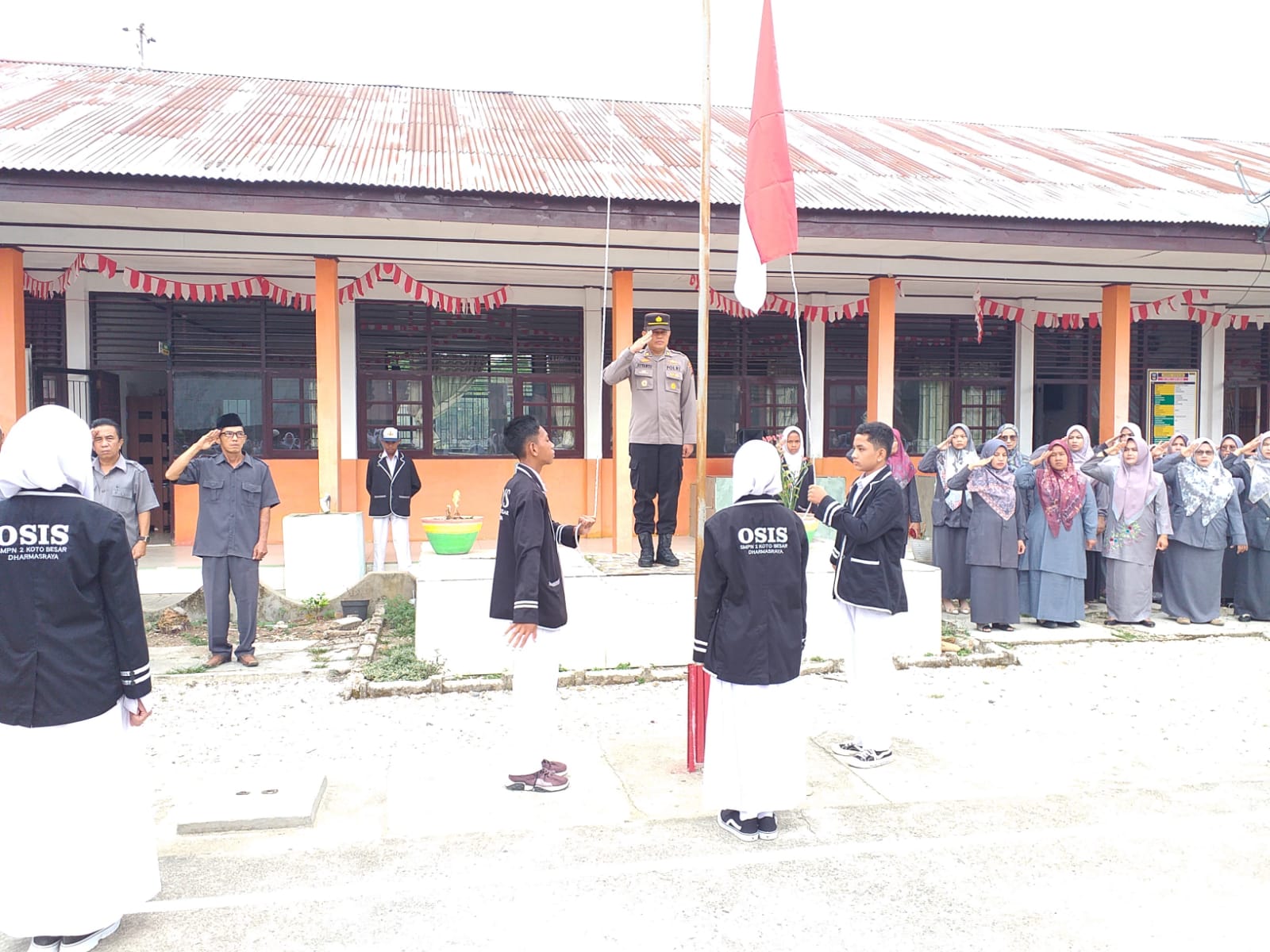 Marawapost.com, Dharmasraya – Kapolsek Sungai Rumbai Polres Dharmasraya Polda Sumbar memimpin upacara di SMP N 2 Koto Besar Kenagarian Koto Gadang Kecamatan Koto besar Kabupaten Dharmasraya, senin (22/10/2023) pukul 07.30 WIB.