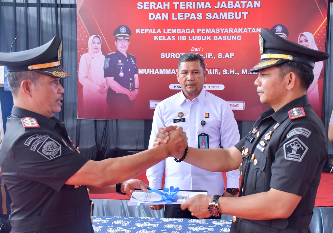 Hal itu disebutkan Bupati Agam diwakili Asisten I Setda Agam, Rahman, S IP serah terima jabatan Kepala Lembaga Pemasyarakatan Kelas IIB Kecamatan Lubuk Basung, Kamis (26/10/23).