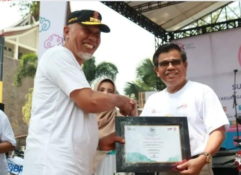Marawapost.com, Bukittinggi – Pemerintah Kota Bukittinggi meraih penghargaan dari Otoritas Jasa Keuangan (OJK) Sumatera Barat dan Tim Percepatan Akses Keuangan Daerah (TPAKD) Sumbar. Penghargaan itu diterima Sekda Bukittinggi, pada peringatan acara puncak Bulan Inklusi Keuangan (BIK) Provinsi Sumatera Barat tahun 2023, di halaman kantor Gubernur Sumbar, Minggu (29/10/23).