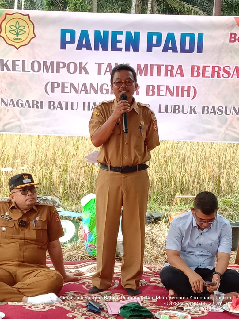 Pada kesempatan itu Kadis Pertanian, Ir. Afniwirman mengatakan, padi kali ini panen padi untuk dijadikan benih. Kelompok mitra bersama adalah salah satu kelompok penangkar padi di Kabupaten Agam.