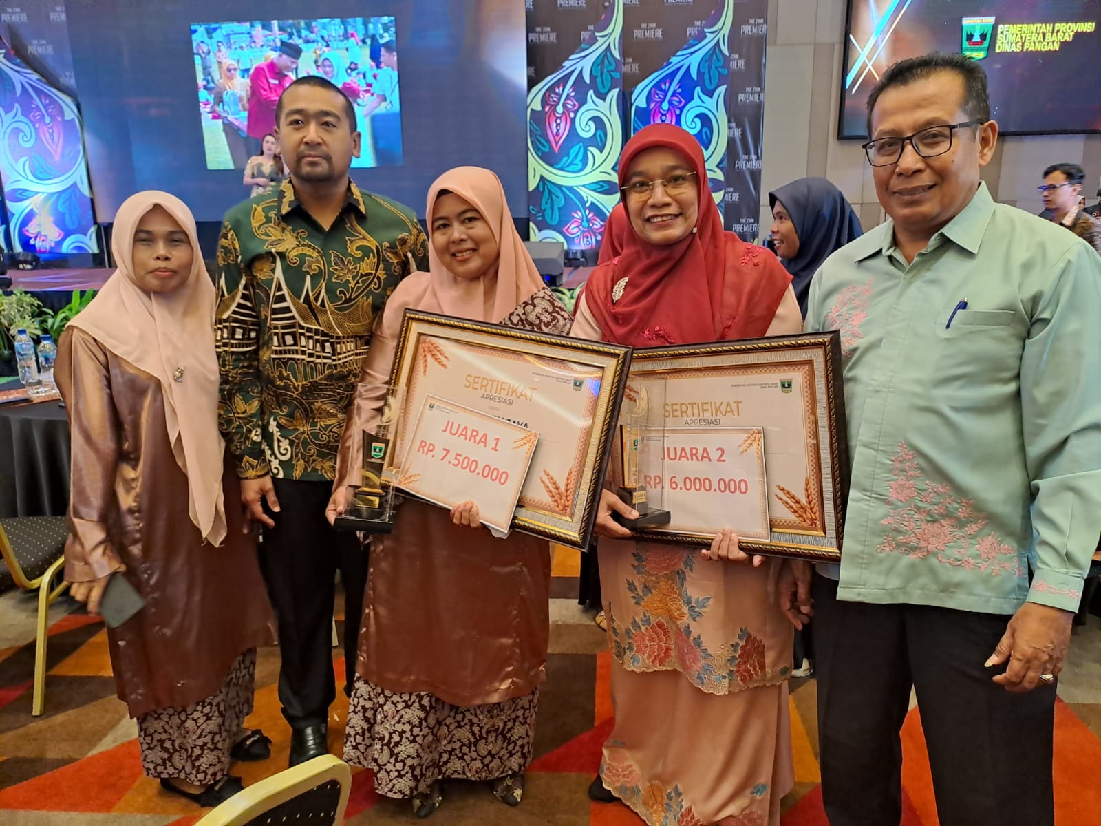 “KWT Maju Jaya Kecamatan Malalak memperoleh peringkat 1 terbaik dalam kategori Pelaku ketahanan pangan dan berhak memperoleh dana Rp.7.500.000 dan serifikat yang langsung diterima oleh Kelompok Wanita Tani KWT Maju Jaya, Irna Dewi selaku Ketua, sementara terbaik 2 untuk Kategori Pelayan Ketahanan Pangan dan Penyuluh diraih oleh BPP Kecamatan Candung berhak memperoleh dana Rp. 6.000.000 beserta sertifikat yang diterima oleh Virgi Astuty” tutup Emrizal. (*)