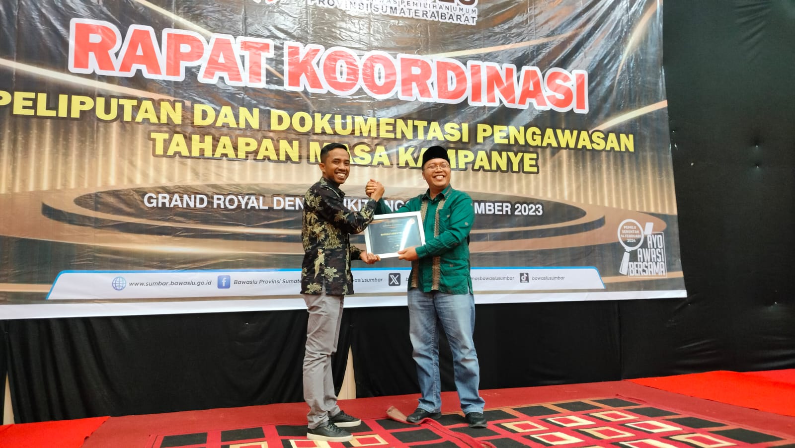 Marawapost.com, Agam – Humas Bawaslu Agam menjadi terbaik se-Sumatera Barat (Sumbar) dengan memenangkan 7 (tujuh) nomisasi penganugerahan Kehumasan Tahun 2023 oleh Bawaslu Provinsi Sumbar di Grand Royal Denai Bukittinggi, Kamis (07/12/23) malam.