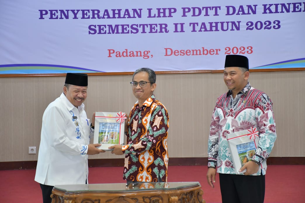 LHP PDTT dan Kinerja diserahkan Kepala BPK Perwakilan Sumbar Arif Agus kepada Bupati Agam, Dr. H. Andri Warman dan Ketua DPRD Agam Dr. Novi Irwan, di aula Kantor BPK Perwakilan Sumbar, Jum’at (08/12/23).