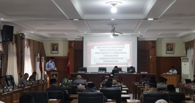 Marawapost.com, Bukittinggi – DPRD Kota Bukittinggi gelar Rapat Paripurna terkait Jawaban Wali Kota terhadap Pemandangan Umum Fraksi-Fraksi atas Ranperda tentang dua Ranperda yakni Penanaman Modal dan Raperda tentang Pemberdayaan Perempuan dan Perlindungan Anak, Jum’at (08/12/23).