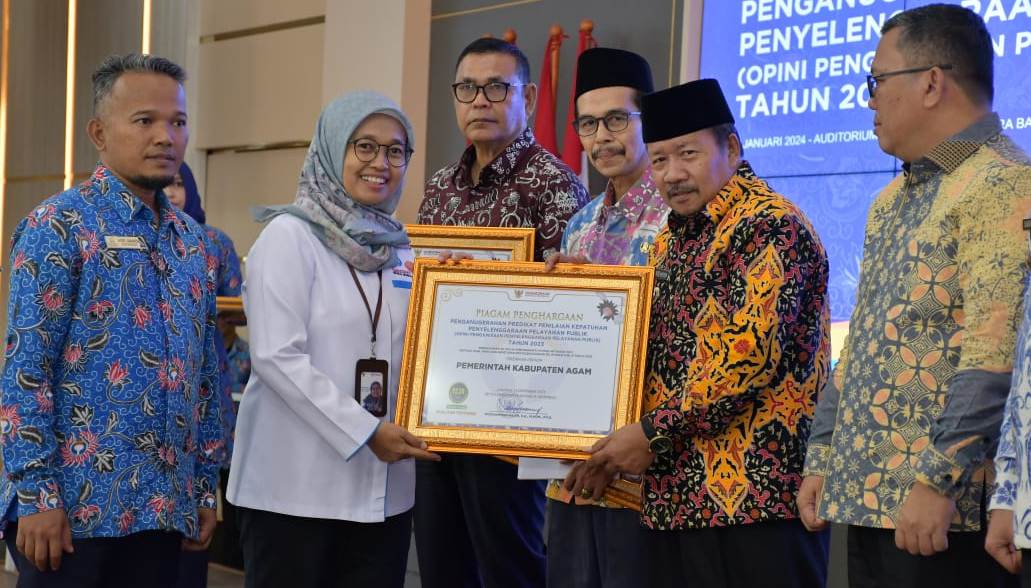 Atas capaian itu, Pemkab Agam menerima penghargaan dari Ombudsman RI.