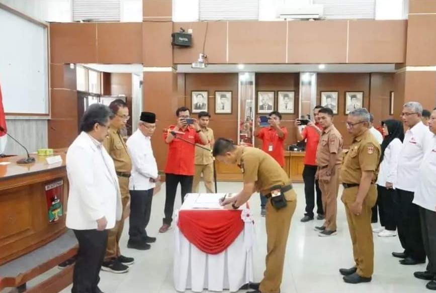 Pelantikan ditandai dengan dibacakan ikrar pelantikan dan penandatanganan SK pelantikan PMI Bukittinggi.