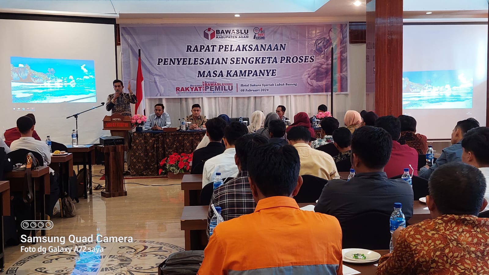 Inilah benang merah yang disampaikan Ketua Badan Pengawas Pemilu (Bawaslu) Kabupaten Agam, Suhendra saat membuka Rapat Pelaksanaan Penyelesaian Sengketa Proses Masa Kampanye bersama Panwaslu Kecamatan di Hotel Sakura Syari’ah Lubuk Basung, Kamis (08/02/24).