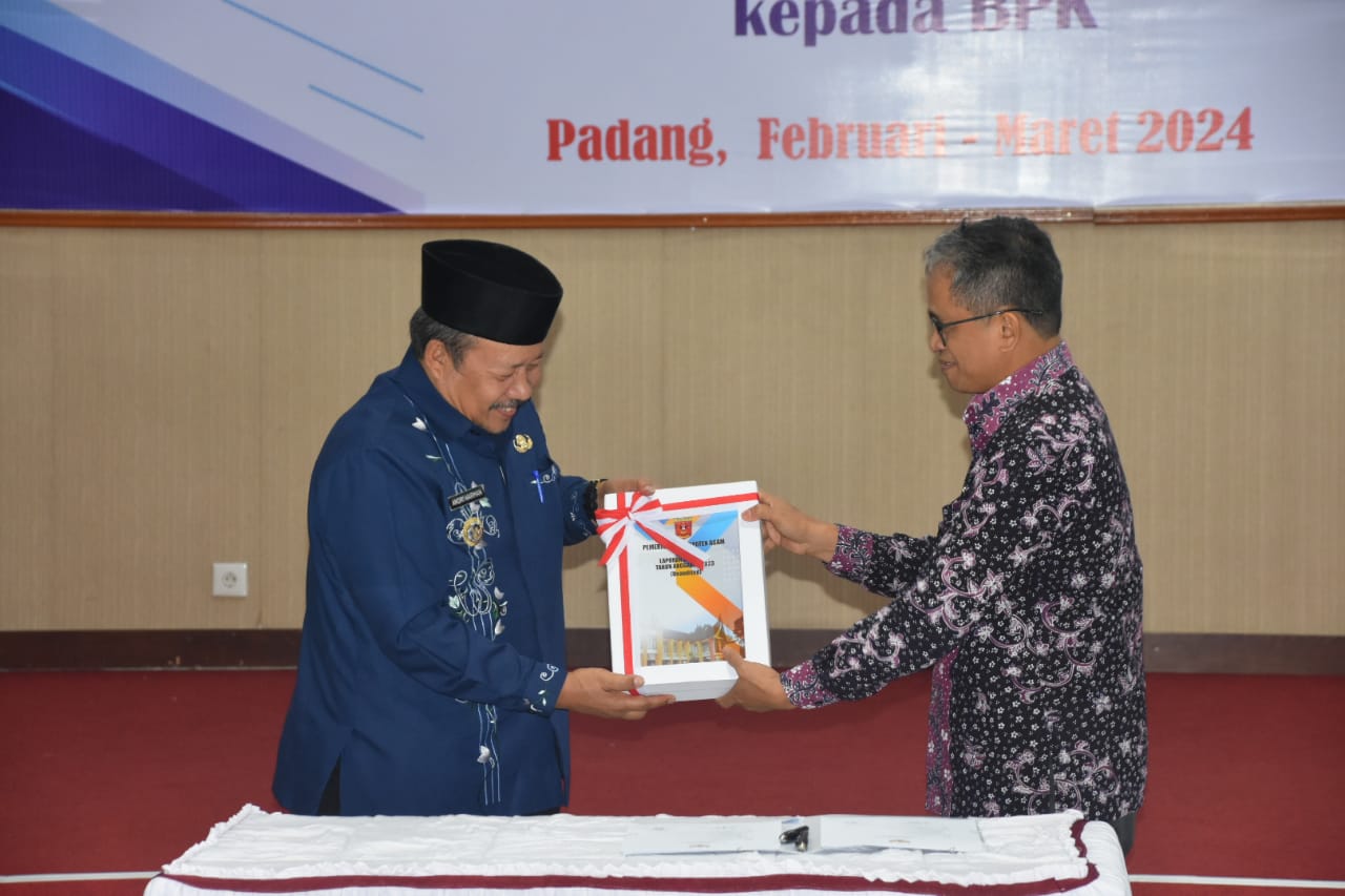 LKPD tersebut diserahkan Bupati Agam Dr H Andri Warman MM kepada Ketua BPK RI Perwakilan Sumbar, Arif Agus, di Aula Kantor BPK Perwakilan Sumbar, Kamis (07/03/24).