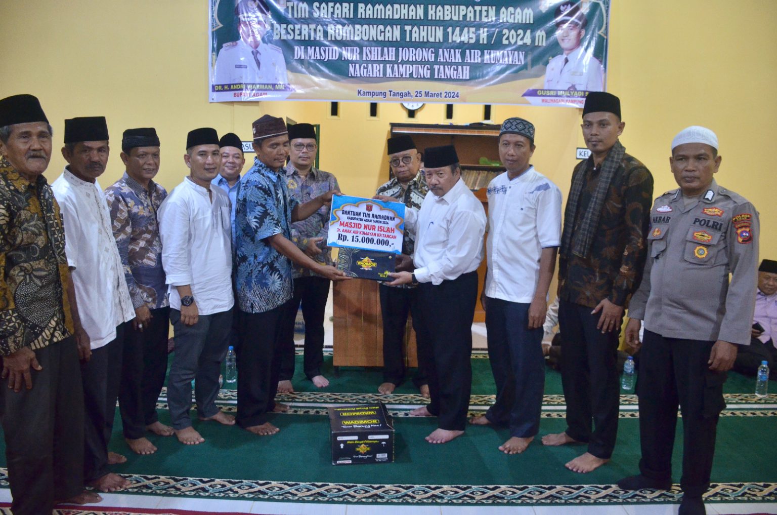 Bantuan tersebut diserahkan Bupati Agam, Dr H Andri Warman, MM, kepada pengurus masjid saat melakukan safari Ramadan ke masjid tersebut, Senin ,(25/03/24).